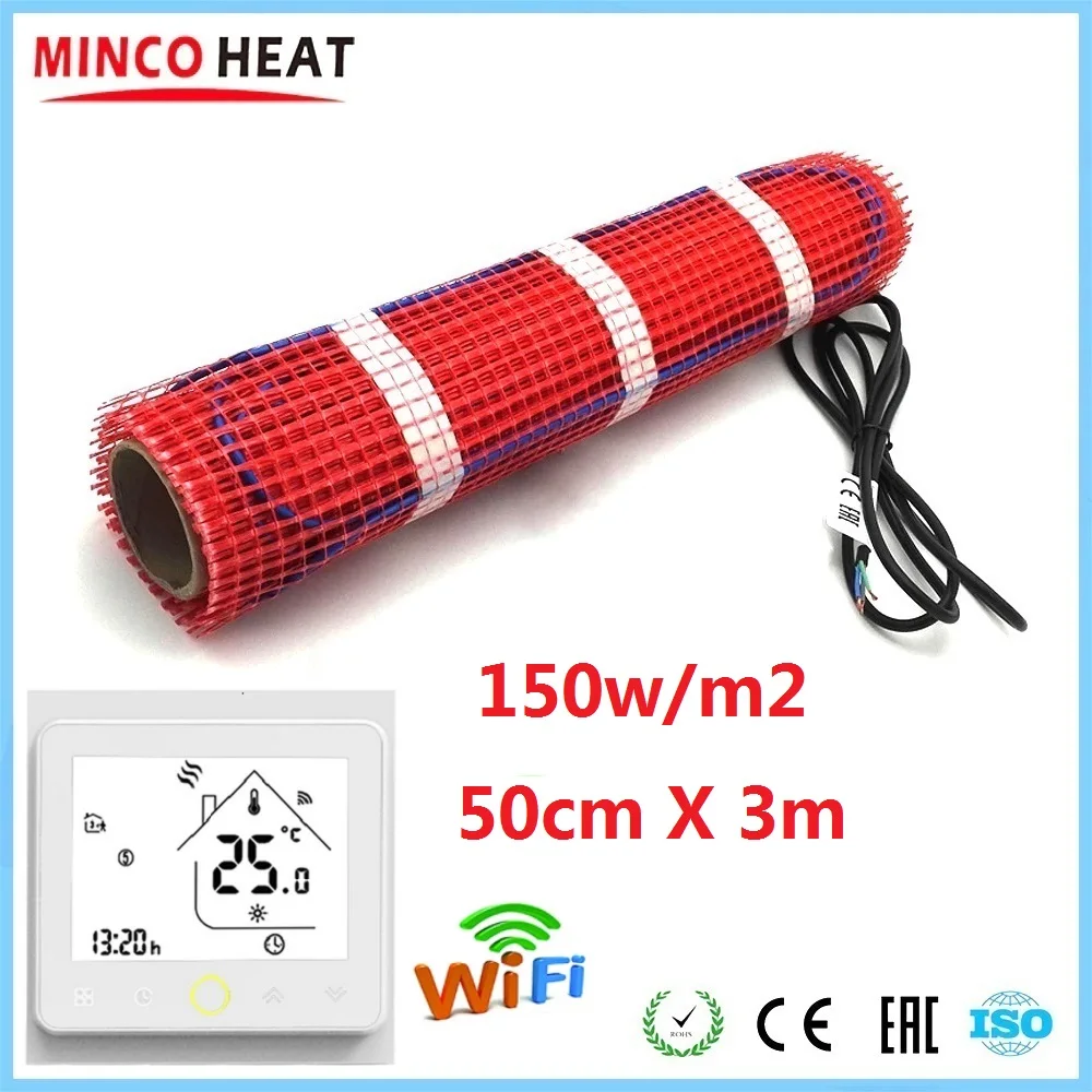 MINCO HEAT 50 см x 3 м 150 Втм2 теплый Нагревательный мат м2 под плиткой деревянный пол с умным WiFi термостатом