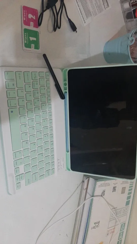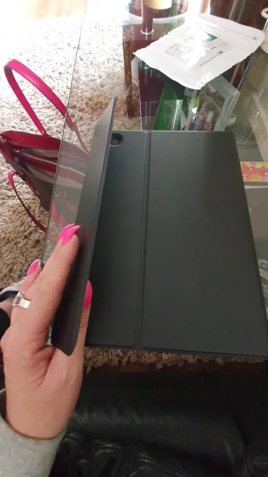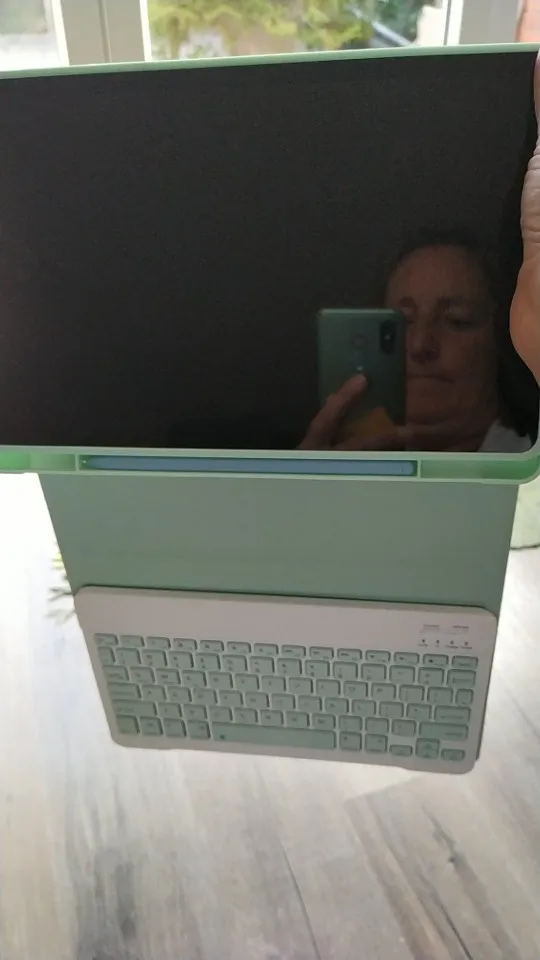 Вкладка идеально сидит на крышке. Цвет клавиатуры и мыши мятный, как описано. Магнетизм идеально подходит для поддержки клавиатуры. В комплект входит Защитная пленка для экрана.