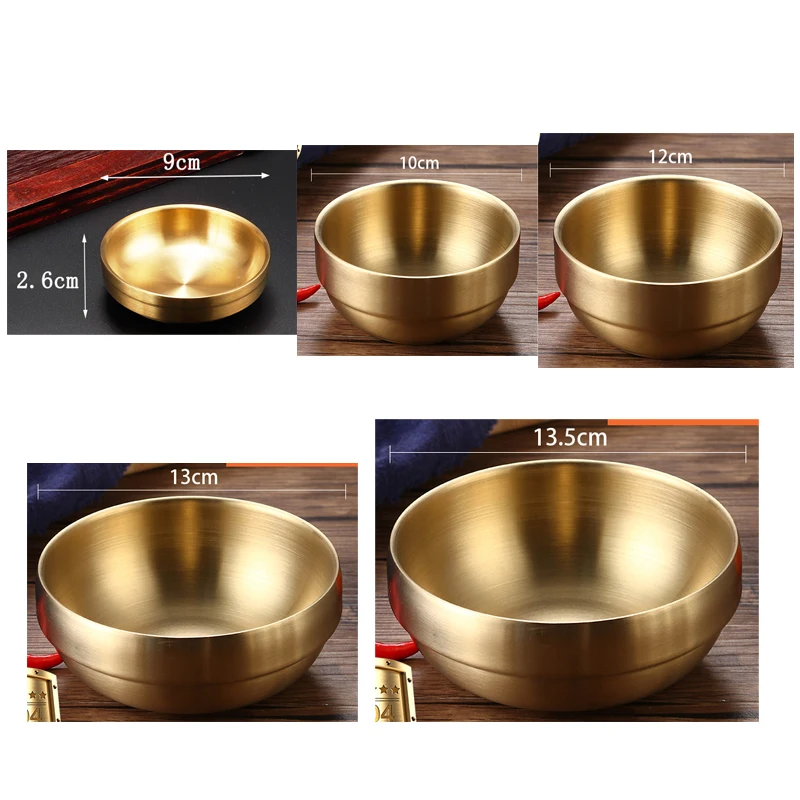 Двойная Толстая миска из нержавеющей стали 9101214 см, Корейская золотистая и серебристая супница для лапши, Детская изоляционная миска для риса, Салатница 304
