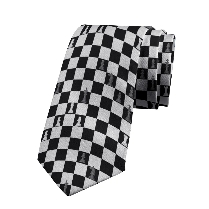 Модный шахматный галстук 8 см для мужчин, Забавный галстук для шахматной доски, повседневный галстук высокого качества из полиэстера, галстук для вечеринки, свадьбы, делового джентльмена, аксессуары, галстук