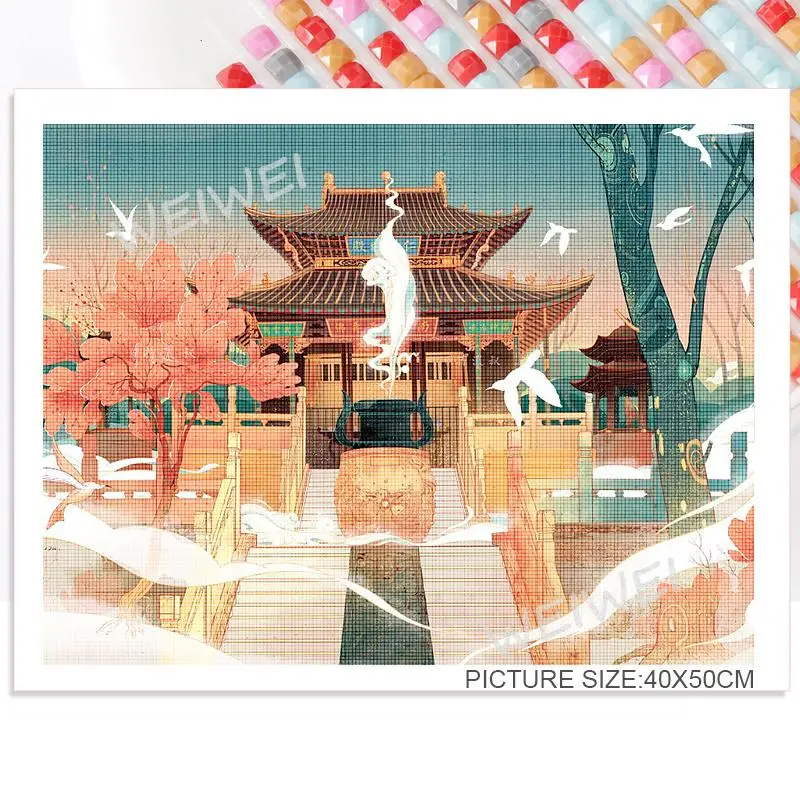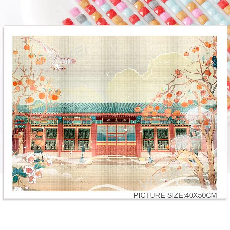 Набор для алмазной вышивки 5D сделай сам, Набор для вышивки крестиком, старинное китайское строительство, вышивка из страз, мультяшная мозаика, украшение для дома, подарок