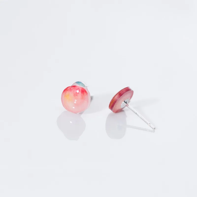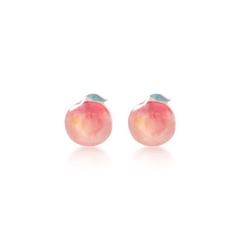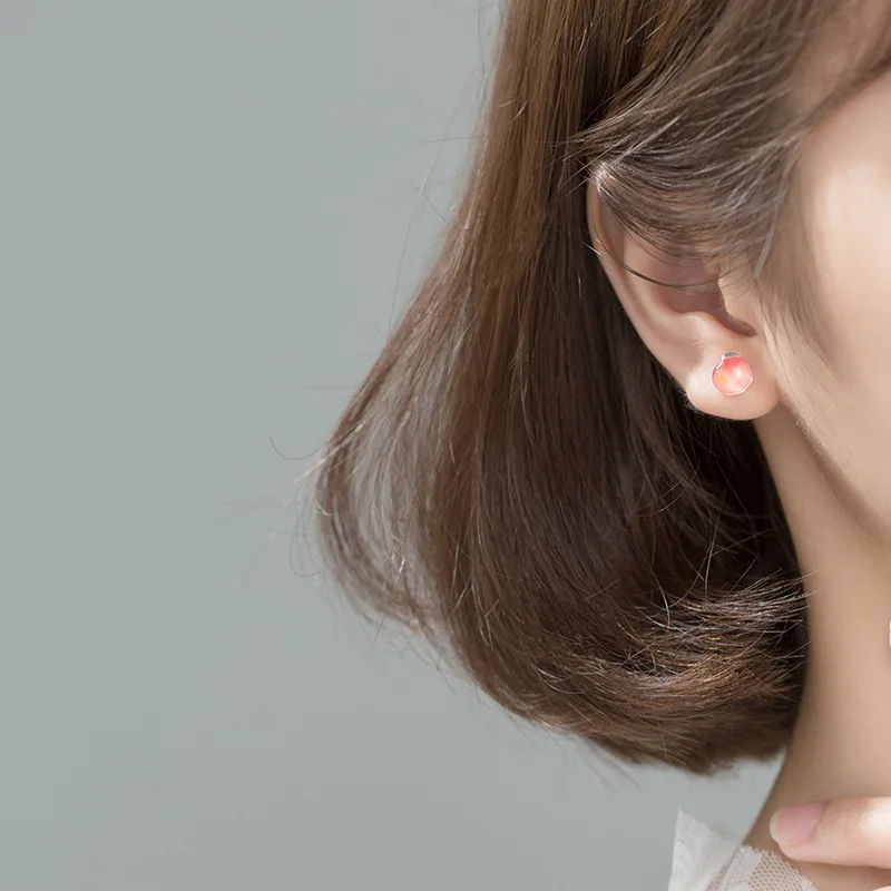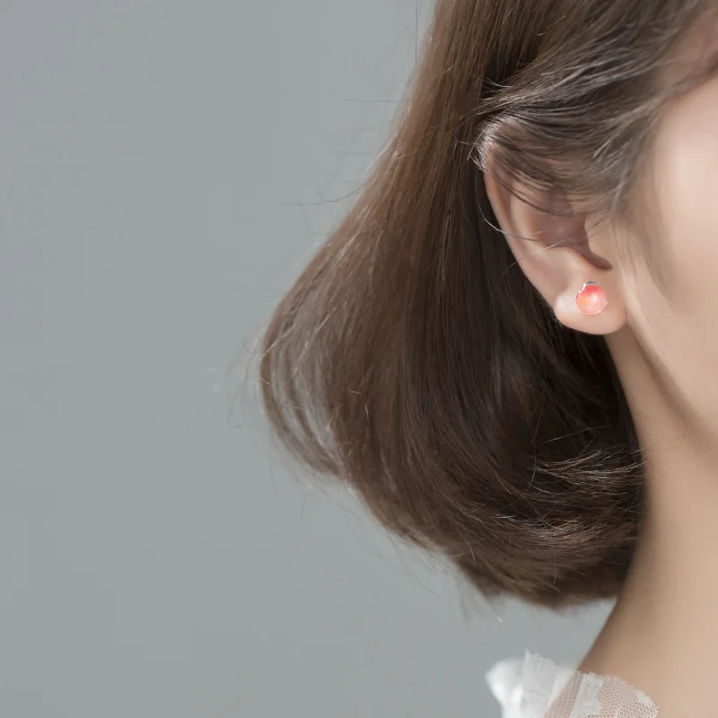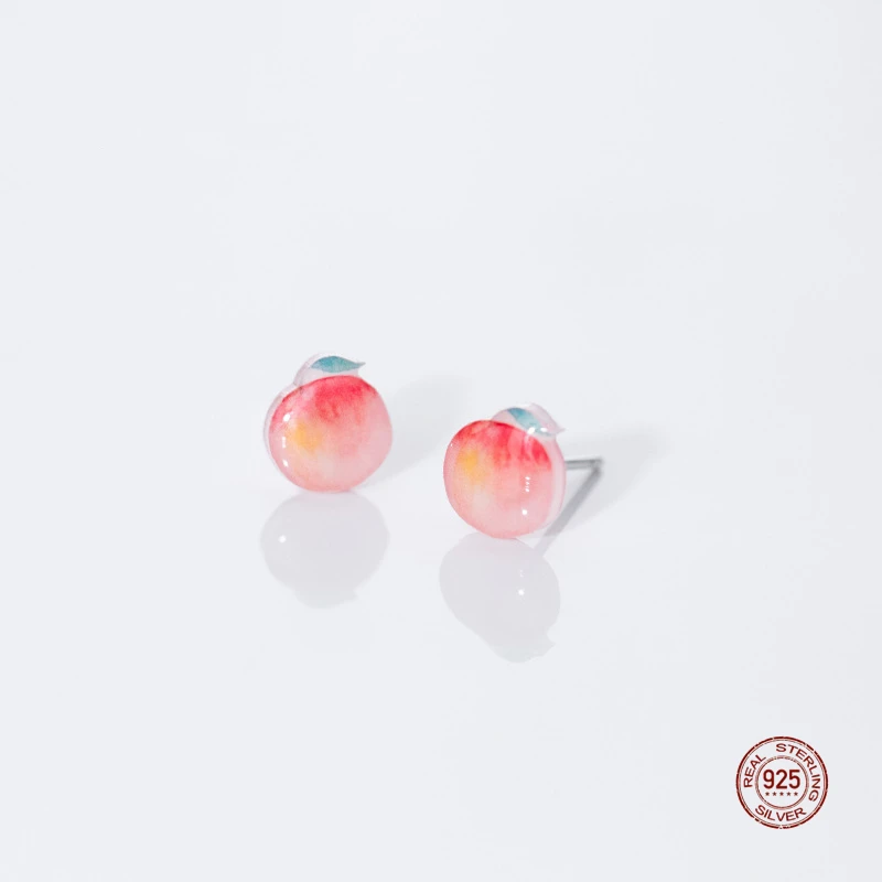 LKO Настоящее серебро 925 пробы иглы сладкий смолы фрукты персик серьги-гвоздики для женщин девушка ювелирные изделия милые ушные шпильки аксессуары