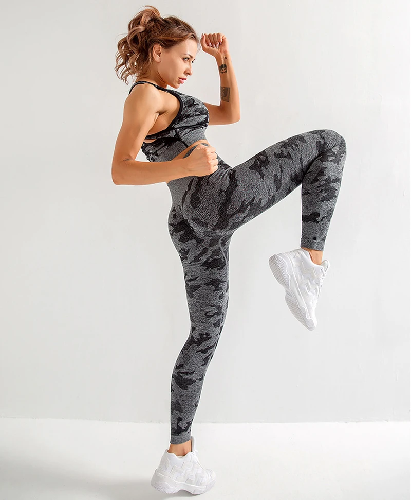 2 шт. Камуфляжный комплект для йоги, спортивная одежда для женщин, ...
