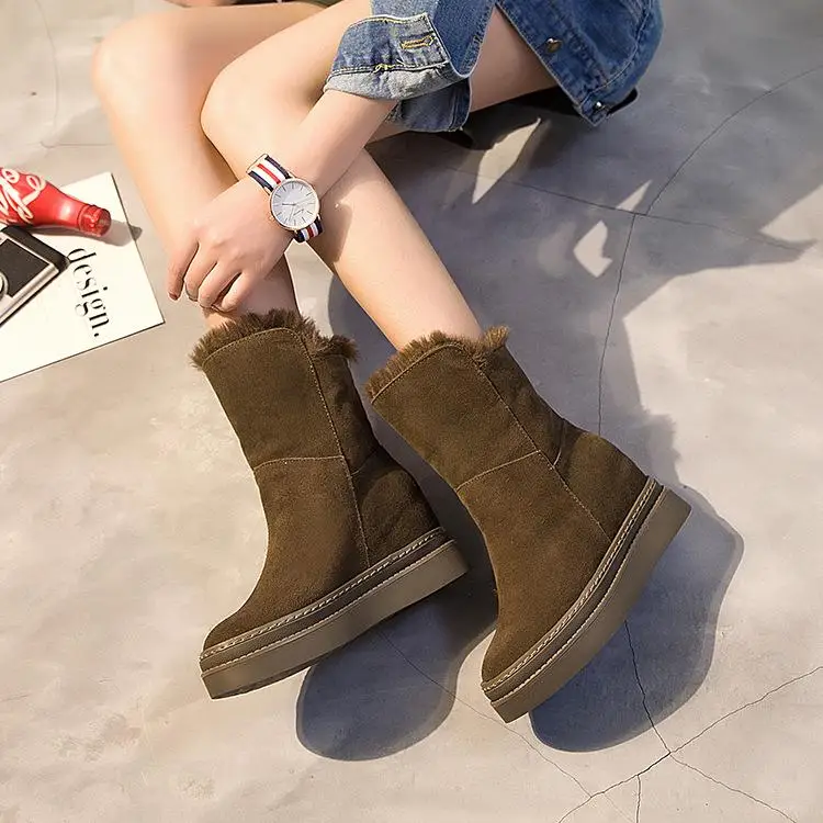 Fujinзимние сапоги из замши и кожи; Женская теплая водонепроницаемая хлопковая обувь; Зимние сапоги из нейлона; Зимние ботильоны; Нескользящие короткие сапоги
