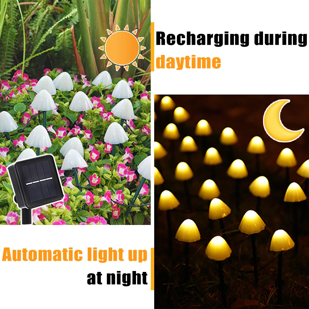 【Энергосбережение от солнечной энергии грибовидной формы освещения 】: без проводов, без счетов за электричество и без розеток. Просто поместите солнечную панель на солнце, чтобы зарядить ее. Модернизированная солнечная панель: светильник может работать в течение 8-12 часов после полной зарядки. Примечание: в тех случаях, когда наступает зима, из-за недостатка солнца светильник, светильник строка может оказаться недостаточно энергии. Пожалуйста, поместите переднюю часть солнечной панели под прямыми солнечными лучами, чтобы убедиться, что она получает достаточно энергии.【Безопасно и удобно 】: Просто поместите светильник на солнечной батарее на открытом воздухе и в прямой солнечный светильник, держите переключатель «Вкл»-автоматически заряжайте в течение дня, и автоматически включается в темноте. Примечание: Из-за низкой начальной энергии, это может обеспечить вам только освещение в течение 1-2 часов, что является нормальным. Пожалуйста, удерживайте кнопку включения при получении солнечной энергии и убедитесь, что на передней панели солнечной панели Нет препятствий.【Практичный и простой в установке 】 этот наружный декоративный светильник легко установить, зафиксировать или разместить в любом месте по мере необходимости. Гибкие и практичные, огнетушенные шарики лампы не повлияют на другие шарики лампы.【Обновление и высокая эффективность 】 10/30 светодиодный и 8 рабочих режимов Солнечный садовый светильник s, более длительный срок службы батареи, более великолепный грибной светильник s, более водонепроницаемый чип, это окружающий светильник, который можно использовать везде.【Простой и красивый 】 простая и креативная форма гриба-последняя! В чудесную темную ночь, своеобразные грибы излучают красочные цвета, позволяя вам увидеть другой мир!【Широко используемый и высококачественный материал 】: эти огни имеют водонепроницаемый чип, термостойкий и водонепроницаемый. Он имеет длительный срок службы до 3000 часов, которая доставляет товары намного дольше, чем любые другие строки солнечный светильник. Идеальное украшение для сада, лужайки, двора, пейзажа, рождественской елки!