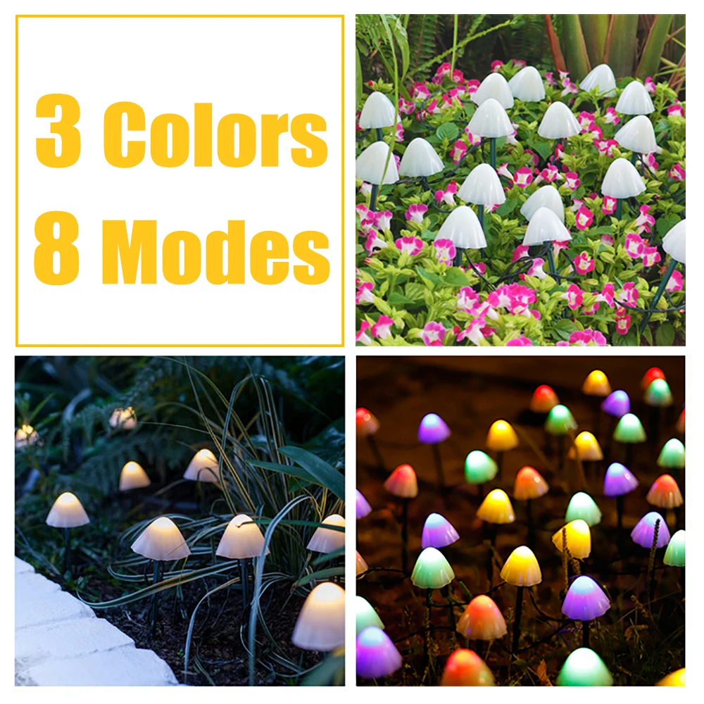 Светодиодная уличная гирлянда в виде грибов на солнечной батарее, 8 режимов