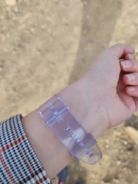 Заказанный 12,20 пришел 01,03 выглядит нормально. Но это сложно и не сгибается. Возможно со временем. Хотя, я не уверен, будет ли он удобен в длительной пробежке, если он не подстраивается под запястье. Как правило, я не могу проверить изменение цвета, потому что здесь зима и нет солнца.