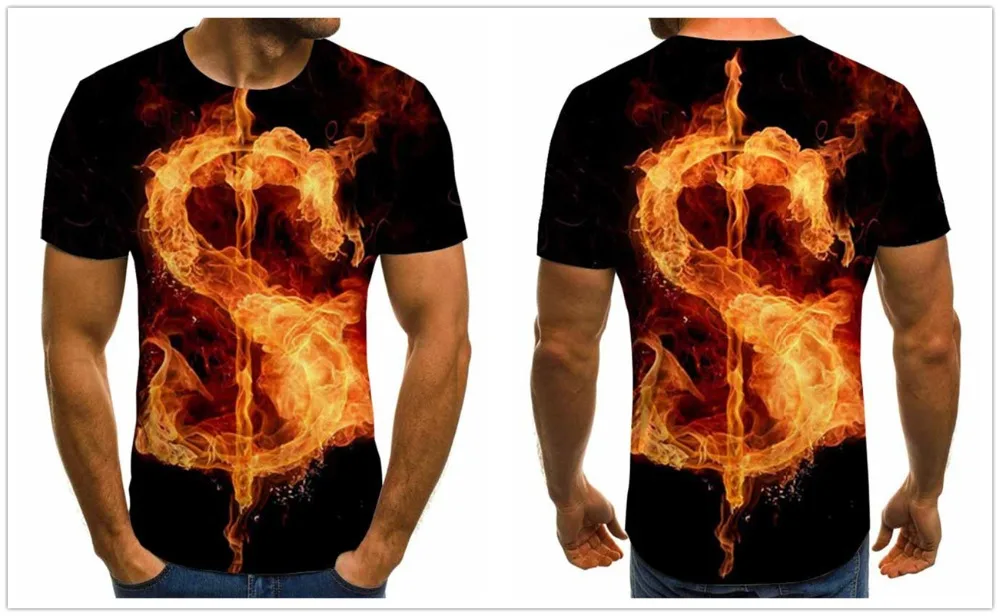 Новая 3d футболка, модная футболка с принтом пламени, мужская и жен...