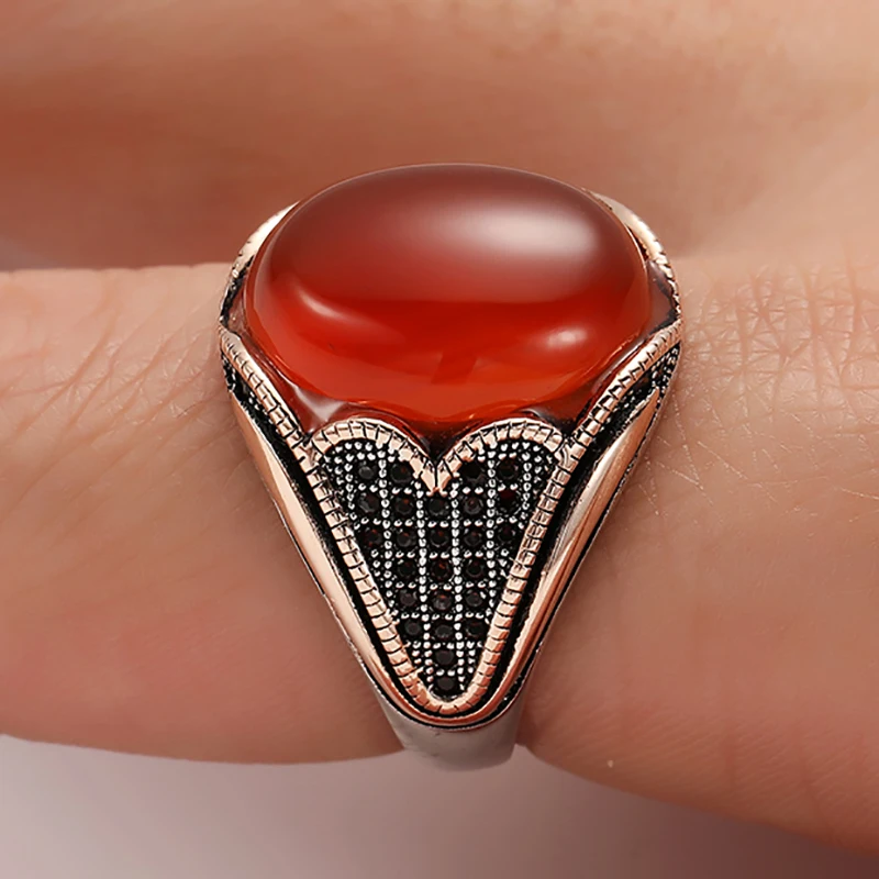Кольцо мужское Винтажное с красным цирконом, оригинальное Ювелирное...