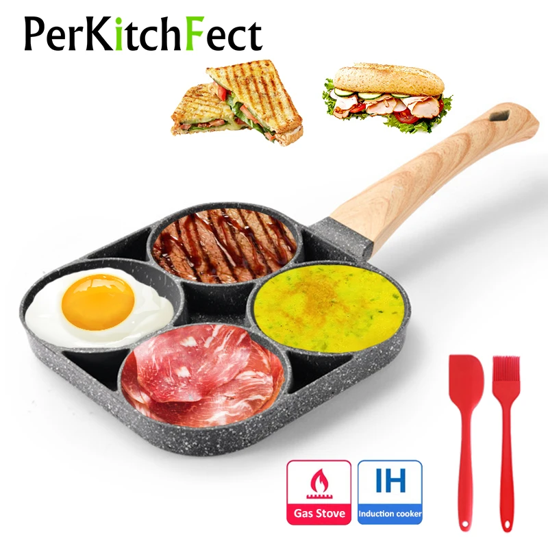 Сковорода с 4 отверстиями, антипригарная домашняя посуда для приготовления еды, яиц, ветчины, сковородок для блинов, стейков, Кухонная Плита