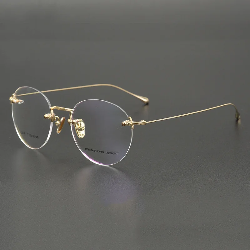 Оправа для очков ручной работы из чистого титана, круглая оправа для очков для коррекции миопии