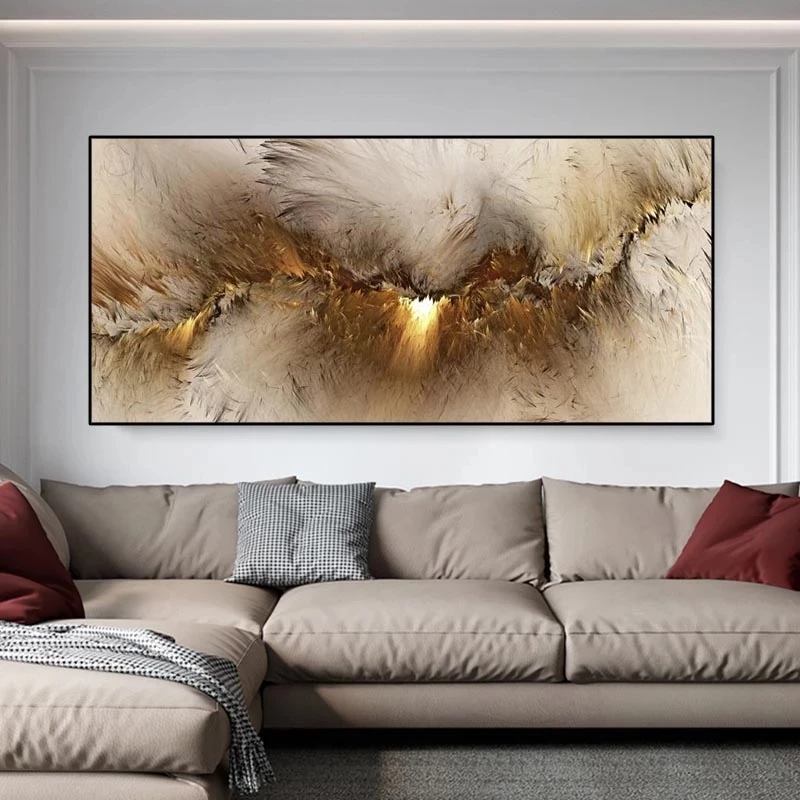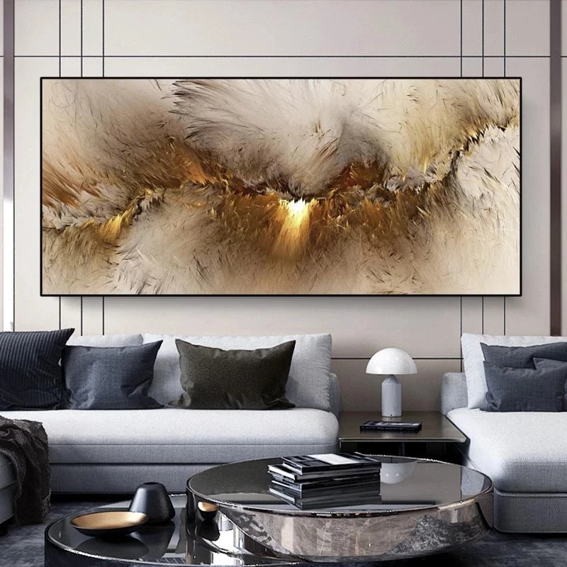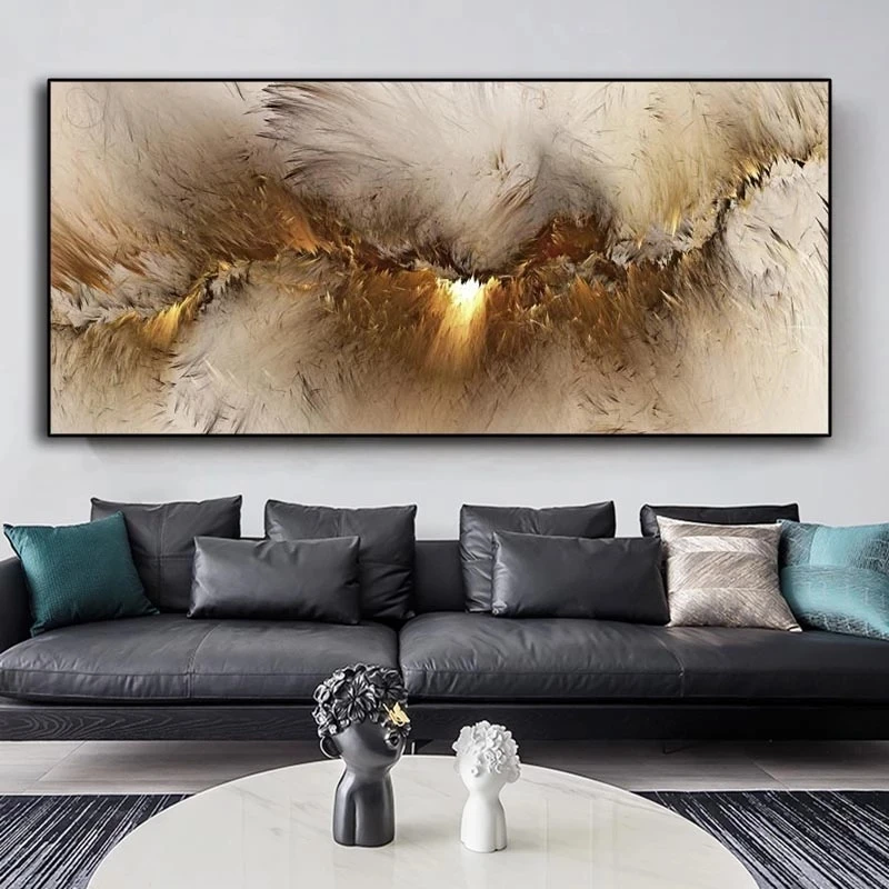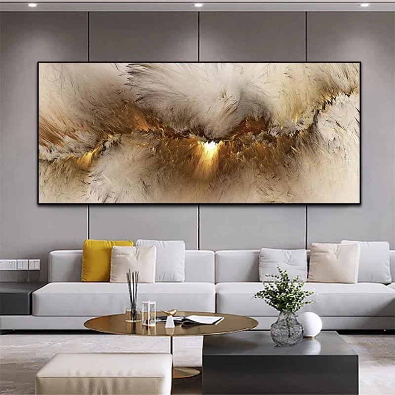 Абстрактная масляная живопись, серые желтые облака, Фреска для гост...