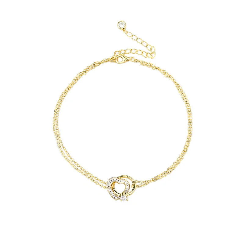 Оригинальный телефон, двухрядный браслет на цепочку, браслет на ногу с кольцом, переплетенным сердцем, регулируемое ювелирное изделие