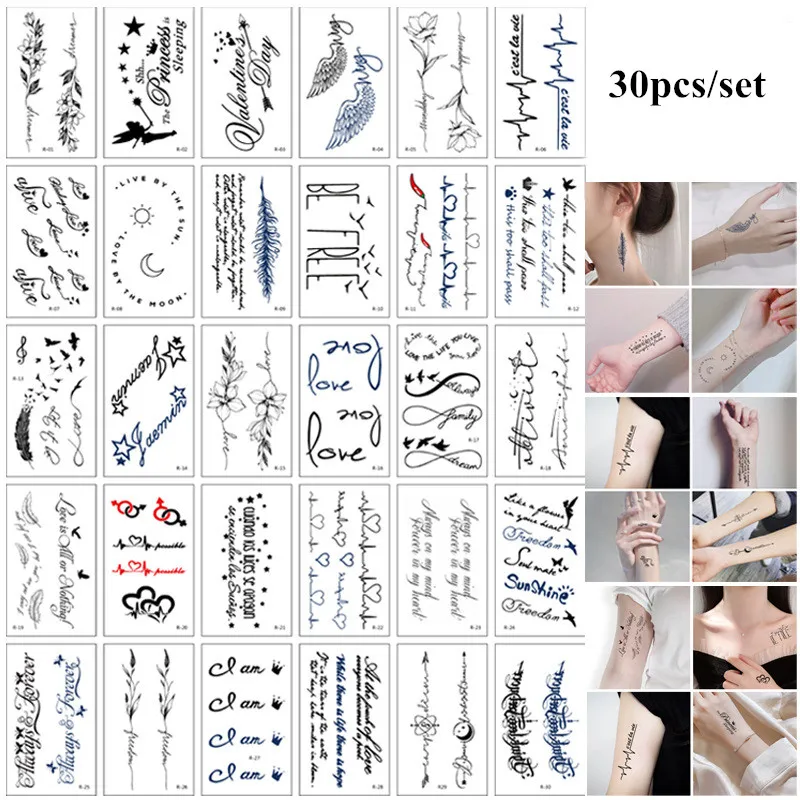 30 шт. Временные татуировки, сексуальные буквы, перо, Временные татуировки, наклейки, водонепроницаемые для женщин и мужчин, руки, палец, тело для женщин и мужчин