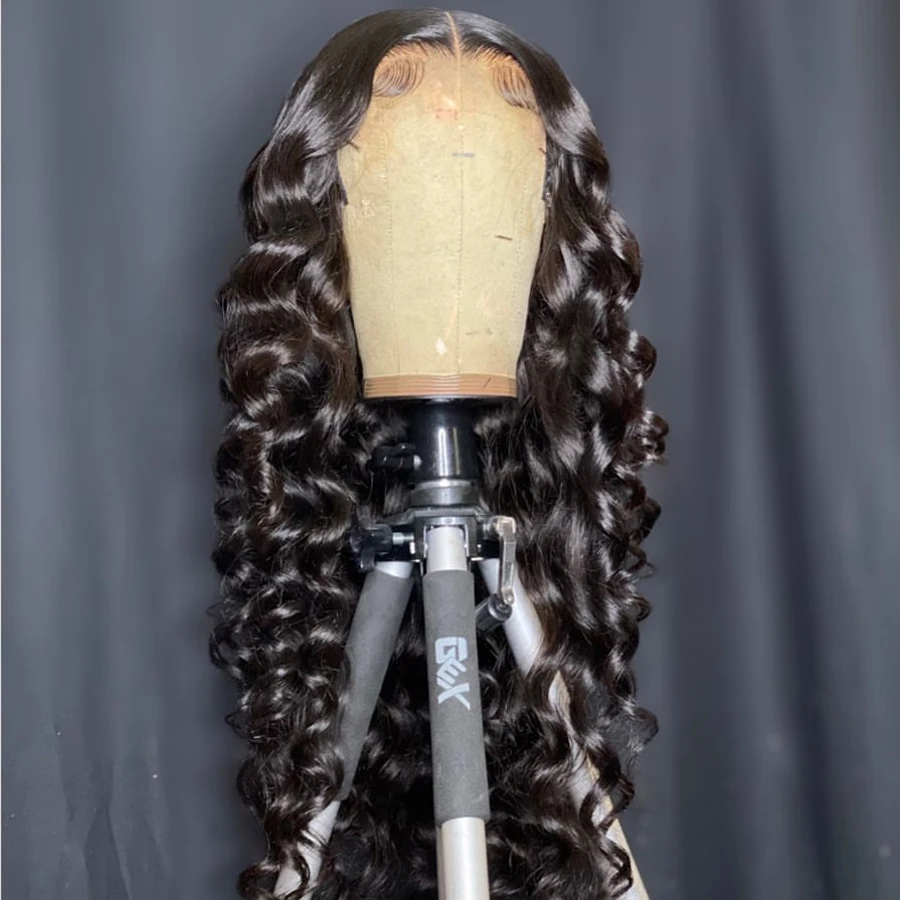 Темно-синие прямые кружевные передние парики из человеческих волос ...