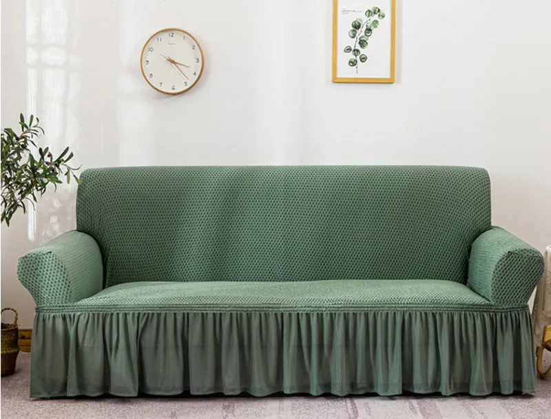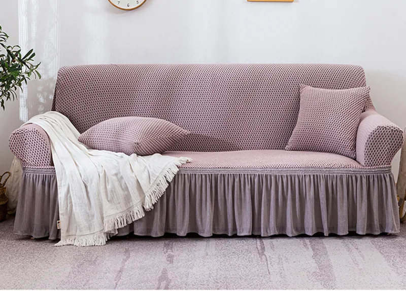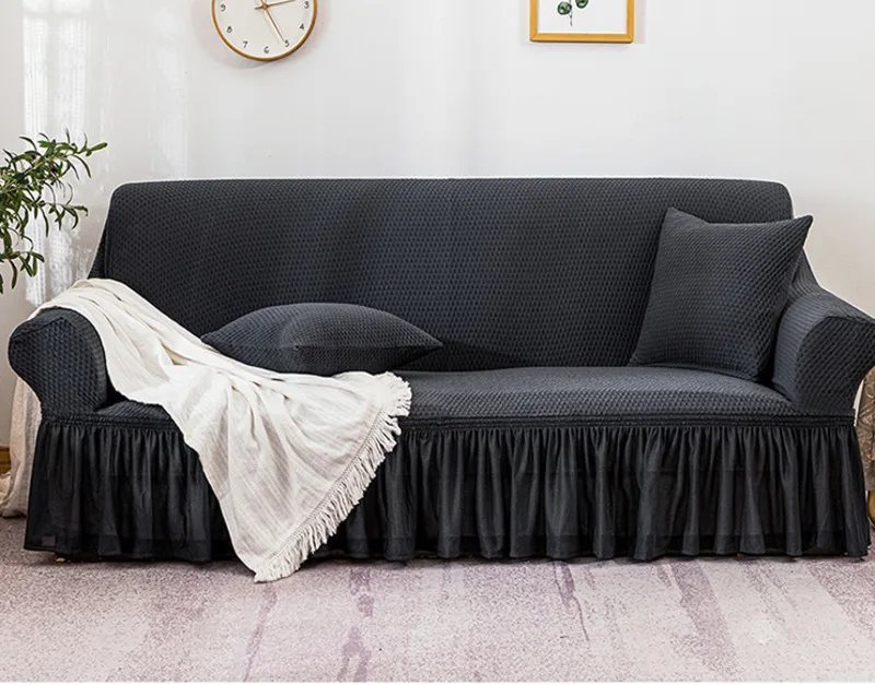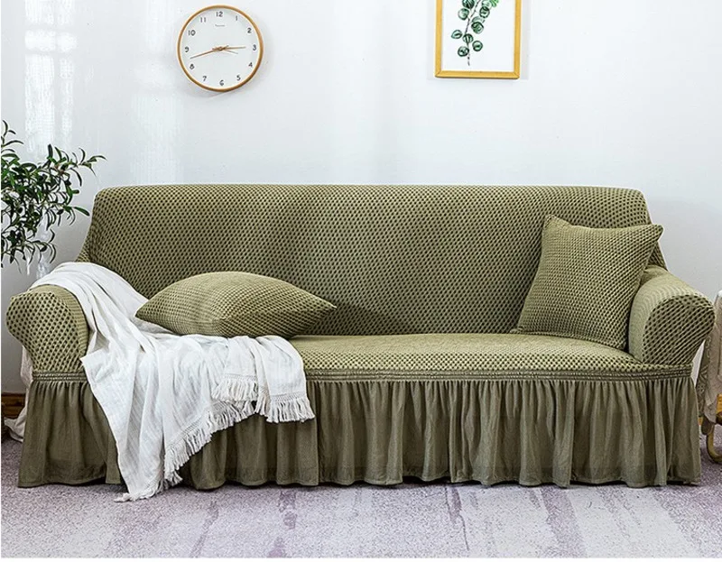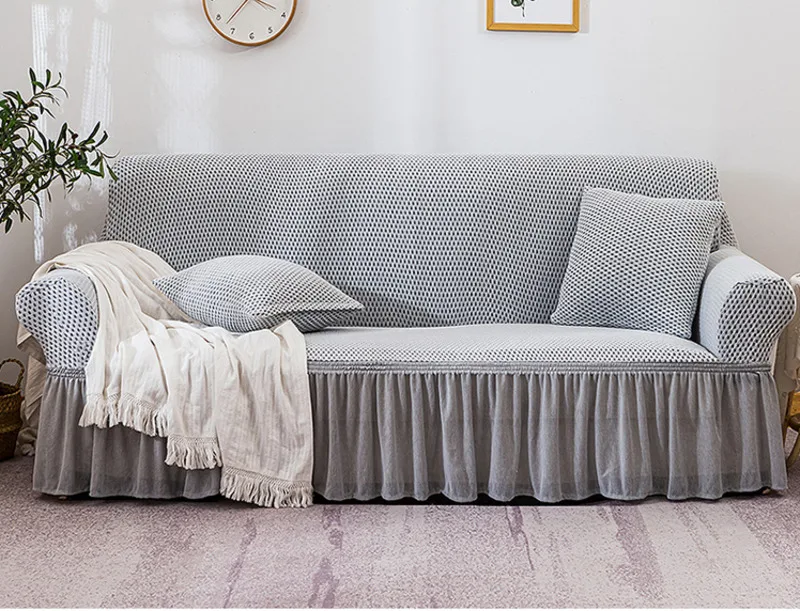 Эластичный чехол для дивана в скандинавском стиле, Жаккардовая юбка, клетчатый чехол для дивана в гостиную, кресло, полноразмерный чехол для дивана на 1234 места