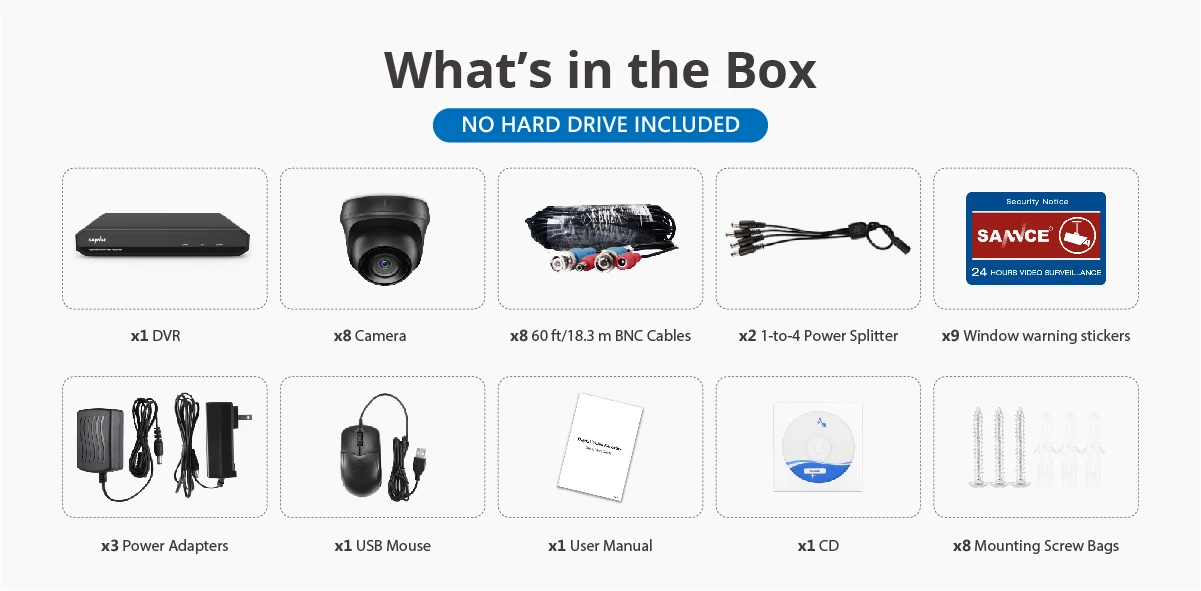 Камера видеонаблюдения SANNCE, 8 каналов, 1080N, DVR, 1080P, 8 каме...