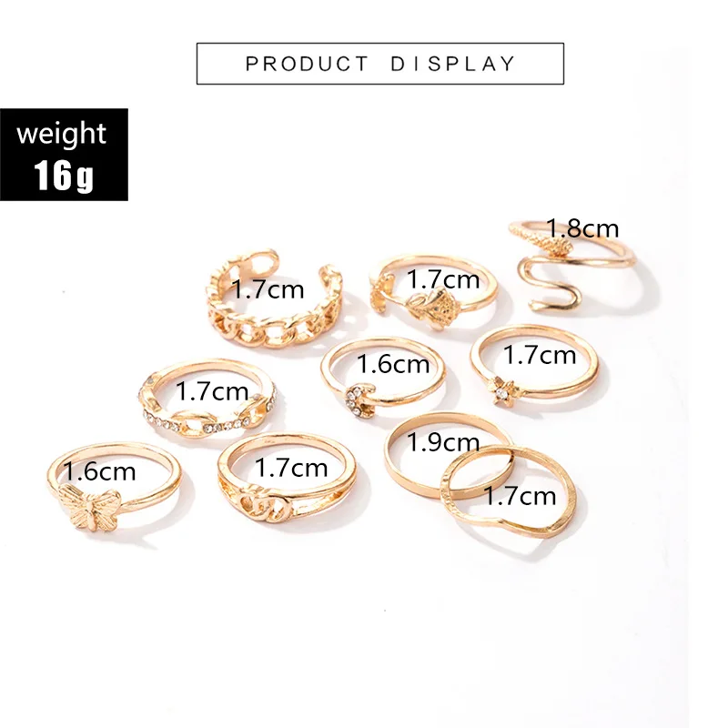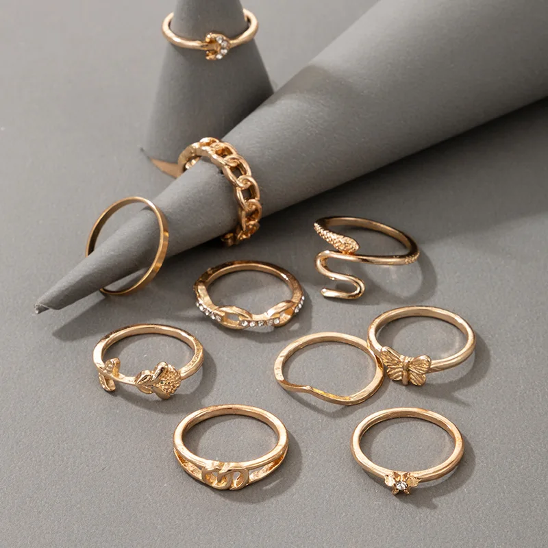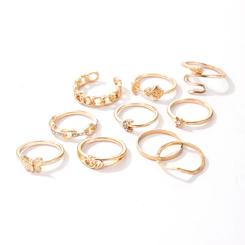 Набор Колец Tocona 10 шт.компл., змея, луна, шармы для женщин, бабо...