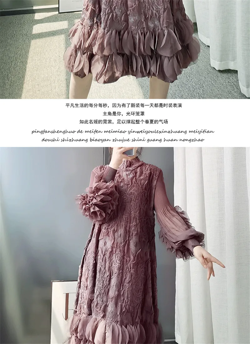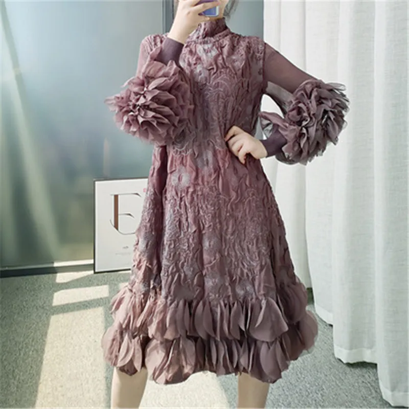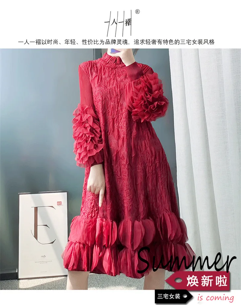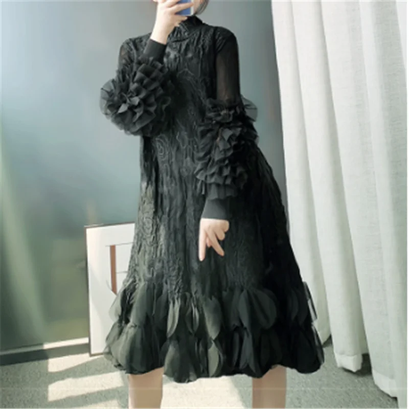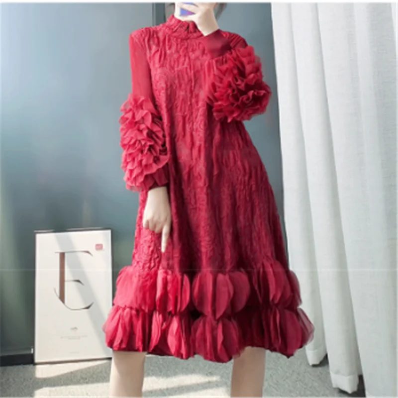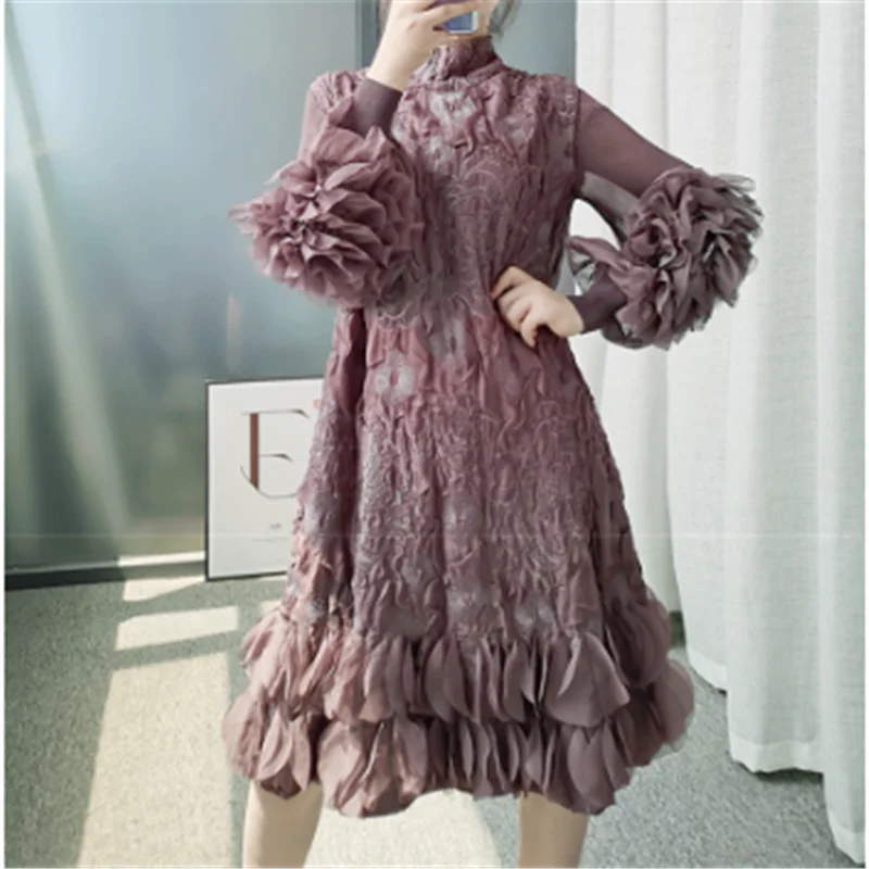 Miyake fold женское французское высококачественное платье с бусинами, весна 2021, новое женское модное свободное платье, большой Размер, мм, тонкое платье для женщин