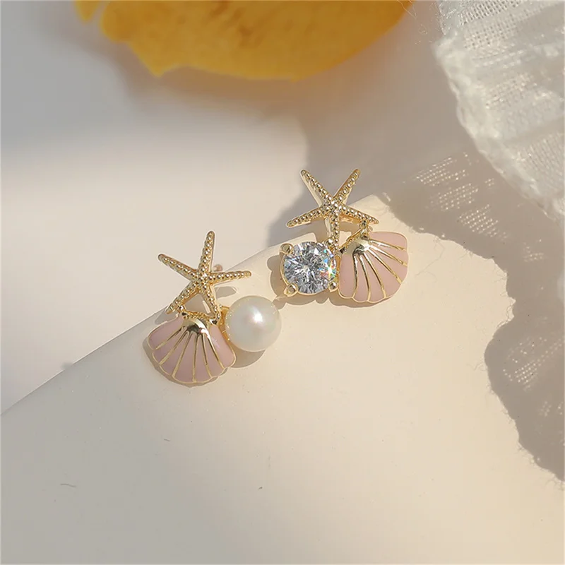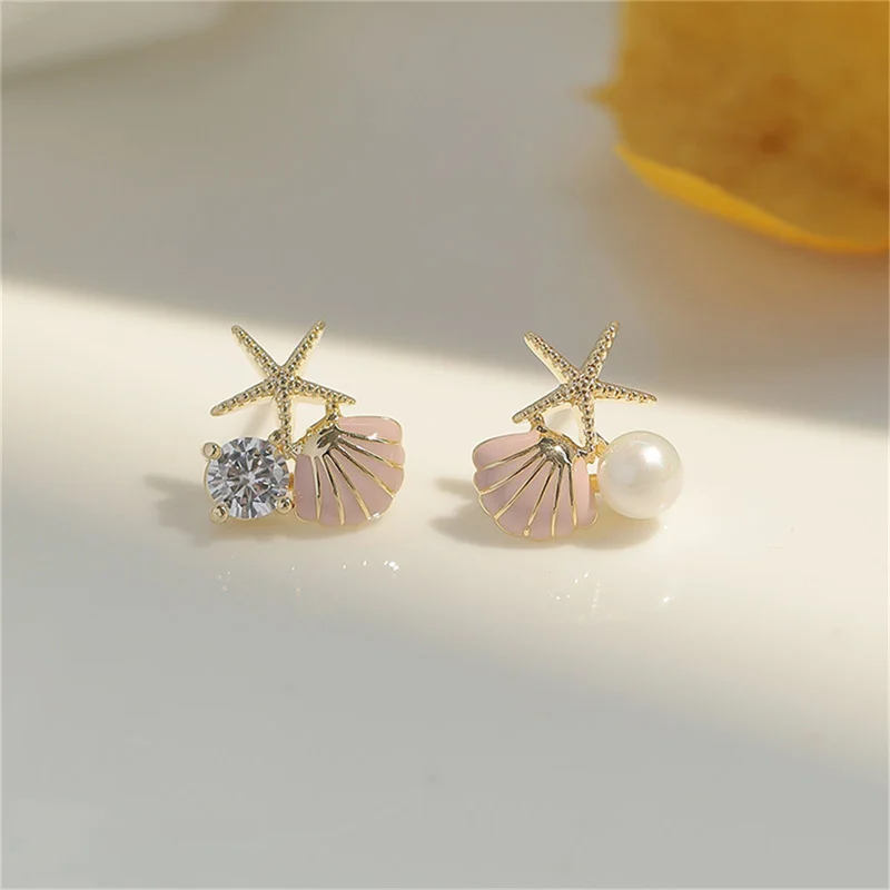 Милые женские круглые серьги-гвоздики, Классические свадебные серьги золотого цвета для женщин, очаровательные серьги-гвоздики с морскими звездами и ракушками