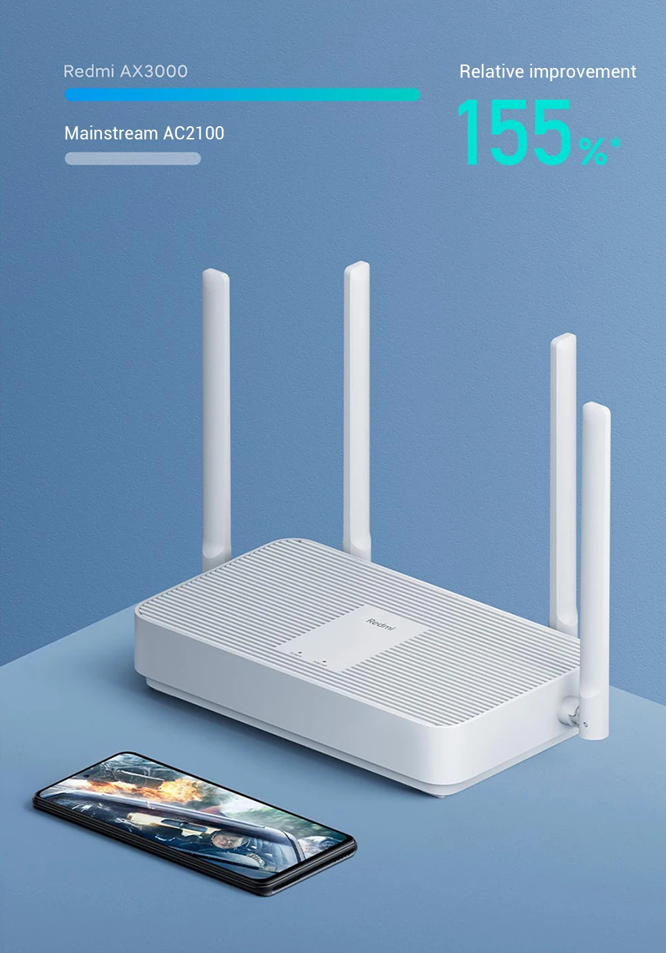Роутер XIAOMI Redmi AX3000, гигабитный двухъядерный процессор, 2,45,0 ГГц, Wi-Fi, 6 широких диапазонов, ОЗУ 256 Мб, 4 антенны с высоким коэффициентом усиления