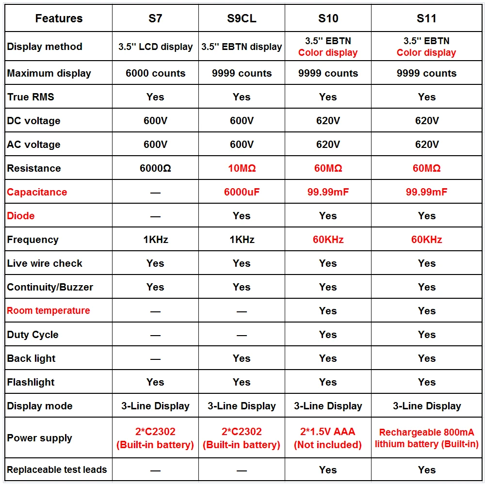 Диапазон измерения ёмкостиS9CL:6000uF / S10-11:99.99mF