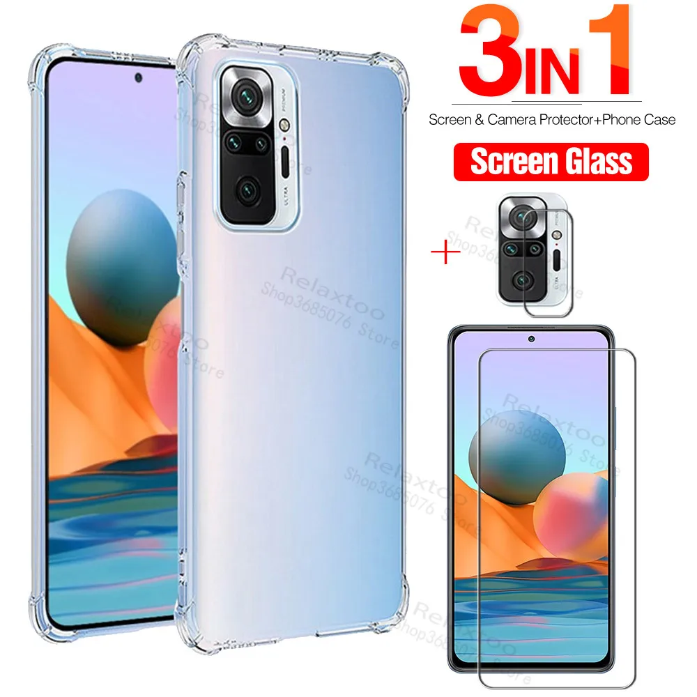 Прозрачный силиконовый чехол из ТПУ для Xiaomi Redmi Note 10 Pro max 2021, закаленное стекло для redmi note 10s, Защитная пленка для камеры