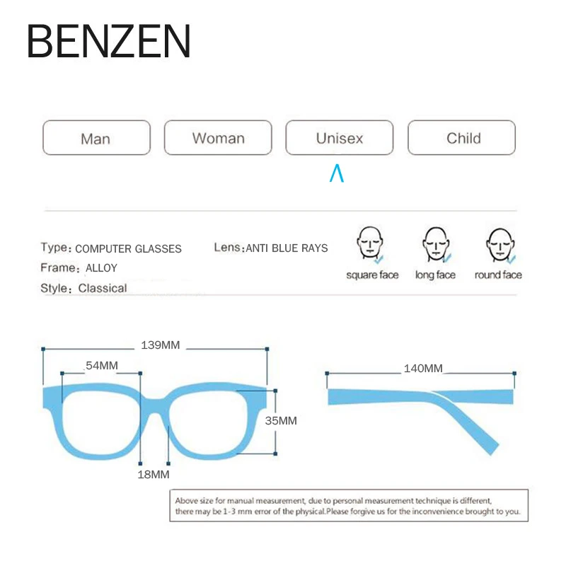 BENZEN компьютерные очки мужские анти-синий светильник очки сплав близорукость очки по рецепту 5228