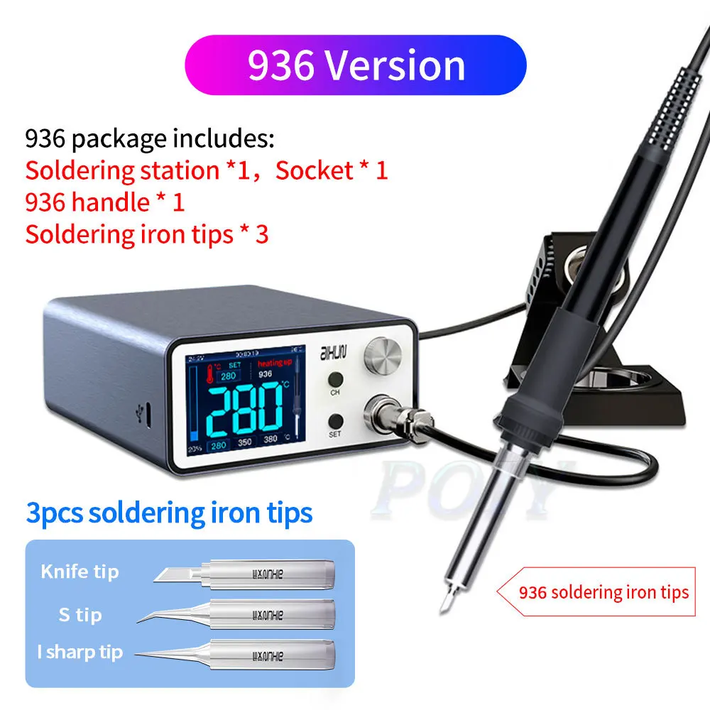 5. Поддержка 936, T12, T245 три ручки, автоматическая идентификация модели ручки и рабочее состояние.