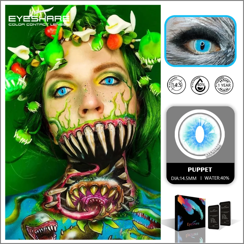 Цветные контактные линзы EYESHARE для Хэллоуина, красота, макияж, искусство для глаз, косметика, белые черные линзы, аниме, косплей