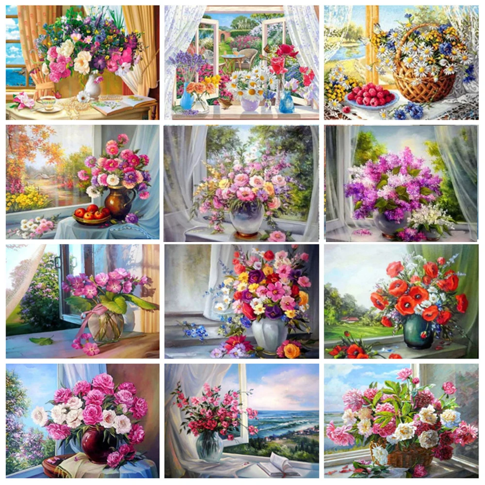 Алмазная живопись 5D "сделай сам" по номерам, Цветочная мозаика на окно, набор для алмазной вышивки, картина для Стразы, домашний декор