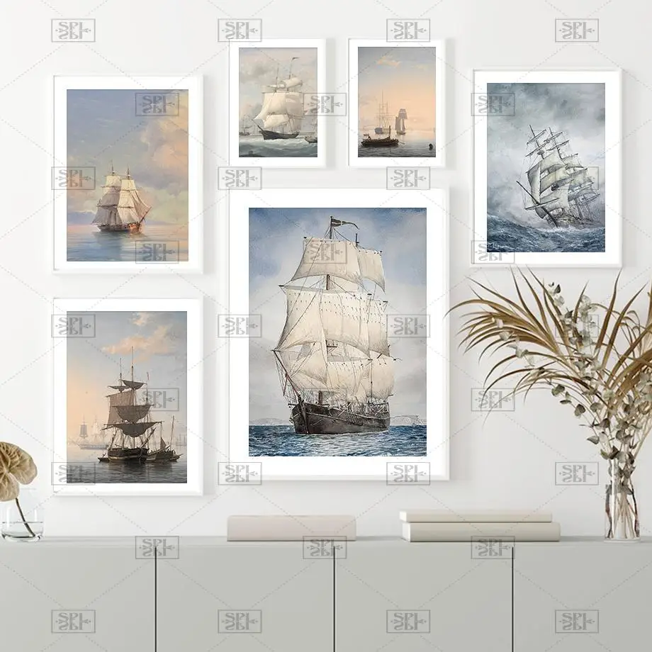 Настенная картина Морской парусник, постеры и принты на холсте в скандинавском стиле, для украшения гостиной