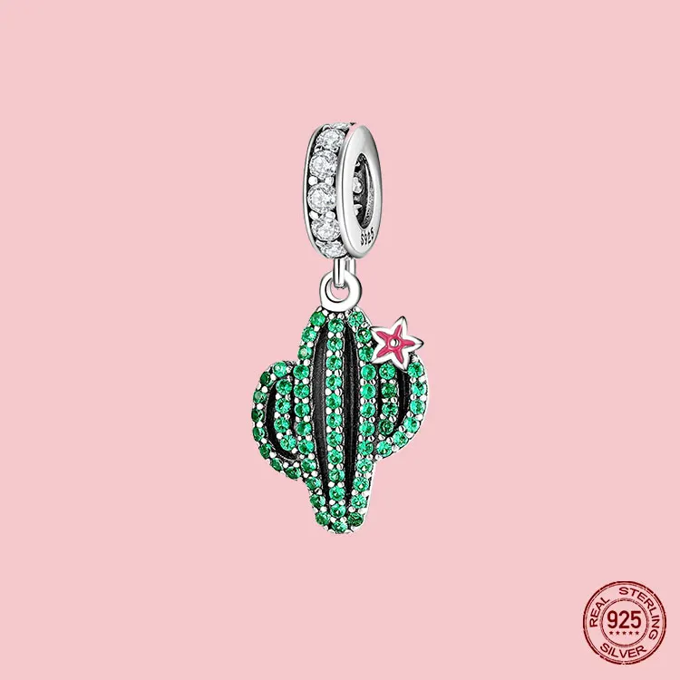 Новое поступление, Серебряный кулон в виде клевера, розы, кактуса, подсолнуха, тыквы, кокосового дерева, подвеска для браслета Pandora, ювелирные изделия