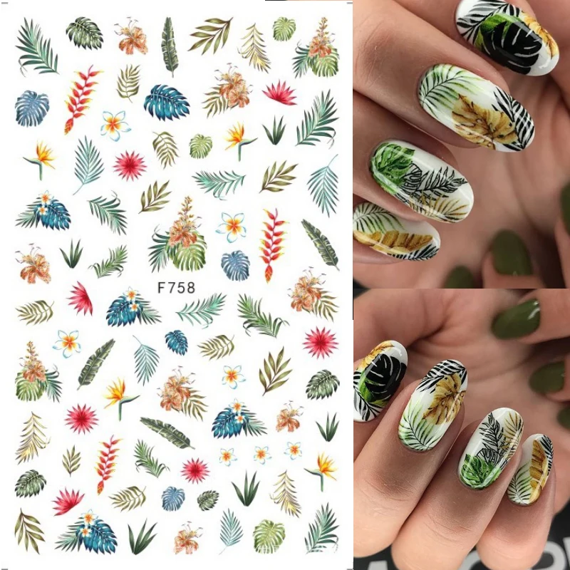 3D наклейки для ногтей, с золотыми осенними листьями, с рисунком кокосового дерева, 1 шт.