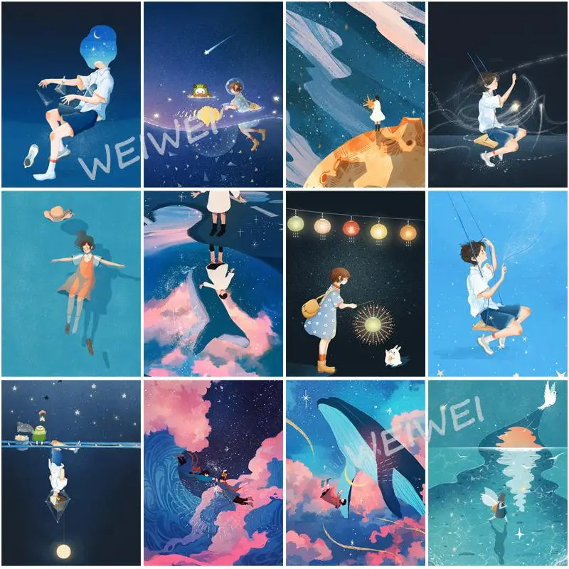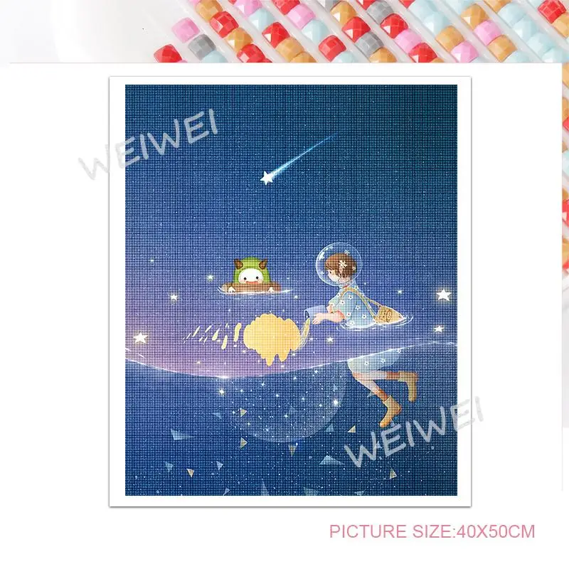 Алмазная живопись мультфильм мальчик девочка путешествия в космосе 5D Diy искусство полная квадратная круглая дрель Алмазная вышивка мозаика хобби домашний декор
