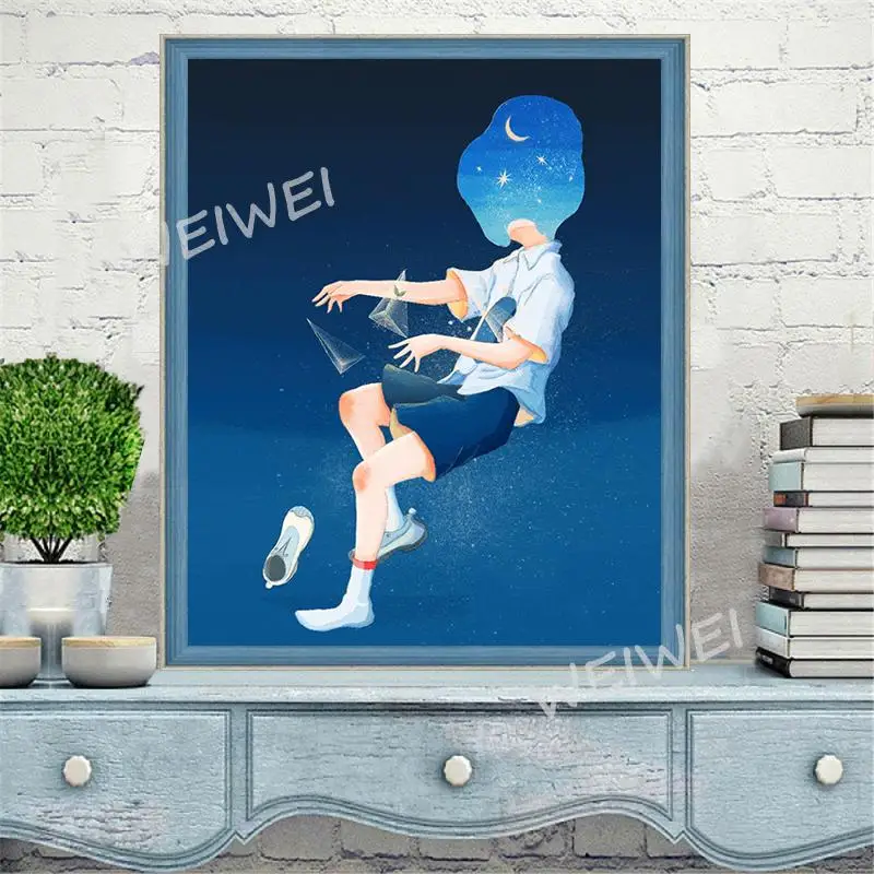 Абстрактная фигурка, морская волна, небо, алмазная вышивка 5D, сдел...