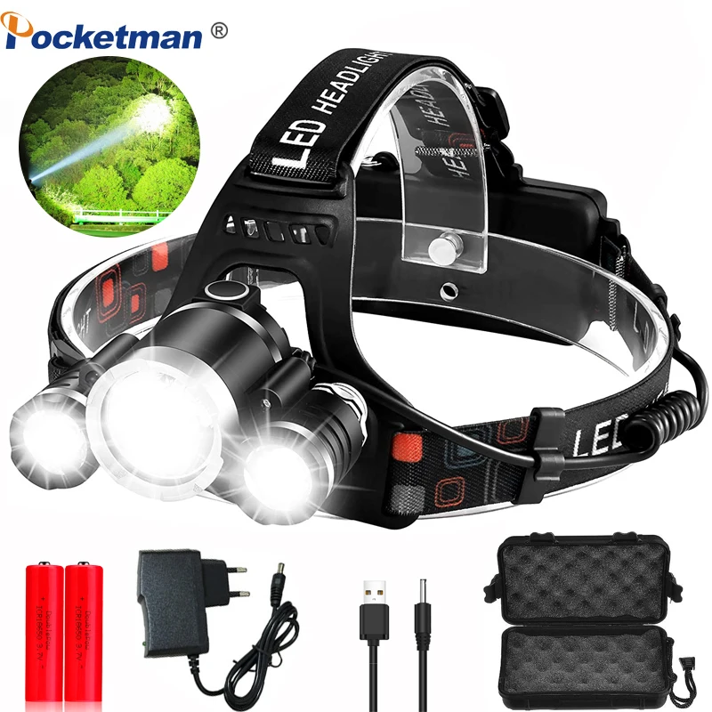 Налобный фонарь 8000 Люмен головной светильник XML 3/5 светодиодный T6 головная лампа вспышка светильник фонарь головной светильник с 18650 батарея AC/DC зарядное устройство лучше всего подходит для кемпинга, рыбалка, на открытом воздухе.