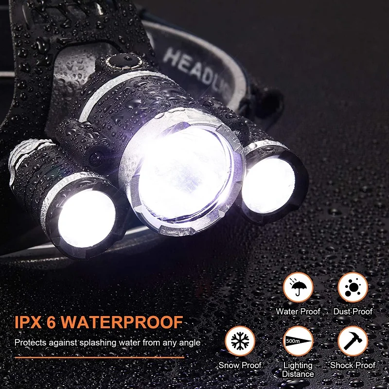 Внутренняя проводка применяет высокоэффективный усилитель цепи, рабочее напряжение широкое и может использовать батареи в большой степениВодонепроницаемая конструкцияРегулируемое основание для каждой головной лампы, с наклоном назад и впередМодель Батарея требуется: 2x18650 3,7 v