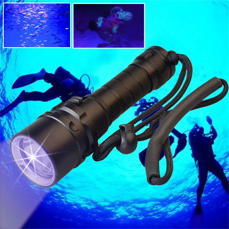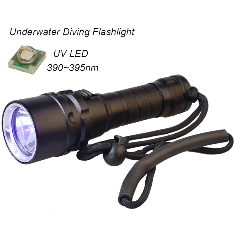 395 нм Светодиодный УФ фонарь для дайвинга мощный 3 Вт ультрафиолетовые лучи Подводный фонарь 50 м фонарь с задним шнуром