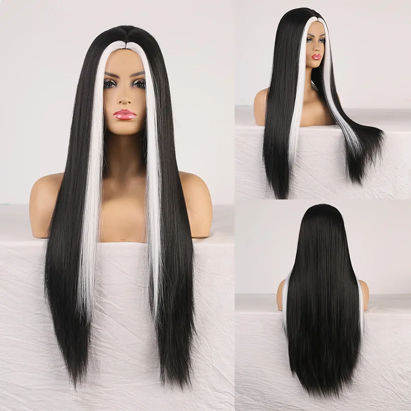 Модный длинный черный прямой парик JOY BEAUTY, Белый синтетический парик, термостойкий парик для косплея для девочек