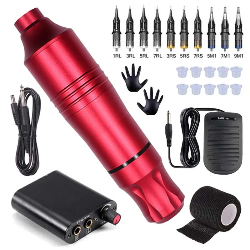 Набор тату-машинок, профессиональная вращающаяся тату-ручка с картриджами, иглы, машинка для перманентного макияжа, набор для начинающих татуировок, искусствоОсобенностиВес нетто: 175,2 гРазмер: полный размерКонфигурация: тату-машинка * 1Цвет: черный, красный, золотой, серебристыйПараметры: 1. Интерфейс: DC интерфейс 2. Материал: алюминиевый сплав 3. Процесс: токарный процесс 4. Пусковое напряжение: 6 В 8. Рабочее напряжение: 8-10 вЧастота переключения: 55-165 Гц, ход: 3,5 мм, регулируемая глубина иглы 0-4 мм.Преимущество:1. Скорость, 10 в-1 Вт об/мин, мощный, используется для затенение и подкладка. Подключается по линии постоянного тока.2. Цельная структура ручки, смена иглы, регулировка длины иглы, просто и удобно;3. Интерфейс постоянного тока-защитный слой из сплава, плотно соединенный, более устойчивый к износу;4. Новый противоскользящий дизайн, удобная ручка, приятное ощущение руки, не устает при длительном использовании;5. Можно использовать все картриджиУпаковочный лист:1 Вращающаяся ручка с кабелем постоянного тока1 источник питания с кабелемСмешанные картриджи 10 шт.1X ножная педаль1 повязка для татуировки2X черные резиновые перчатки10ХТатуЦветные чашки