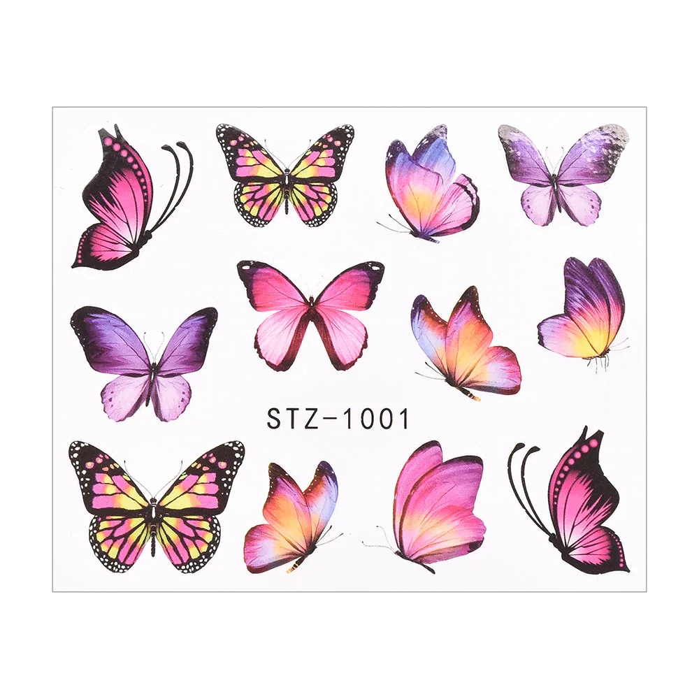 Наклейки для ногтей, розовые и фиолетовые бабочки, лак для ногтей, 1 шт.