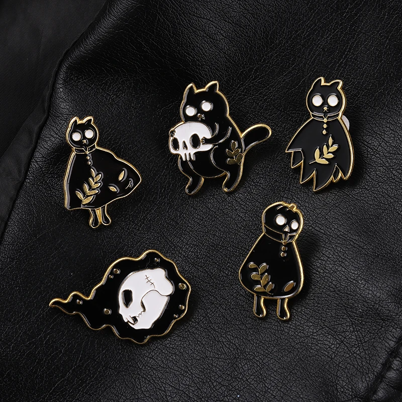 Эмалированная булавка в виде призрака, кота, черного цвета, черепа, скелета, демона, металлические броши, значки на Хэллоуин, Значки для девочек и мальчиков, подарки, аксессуары