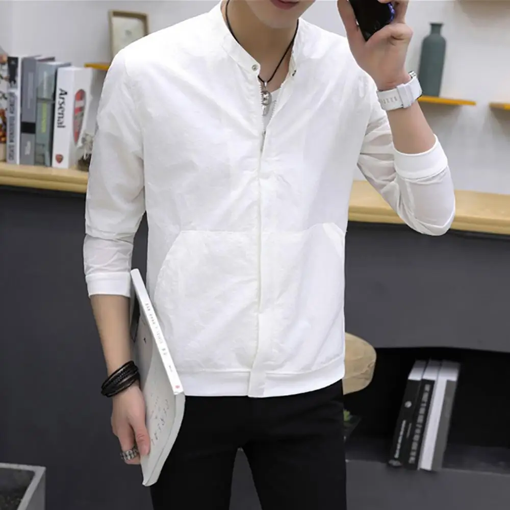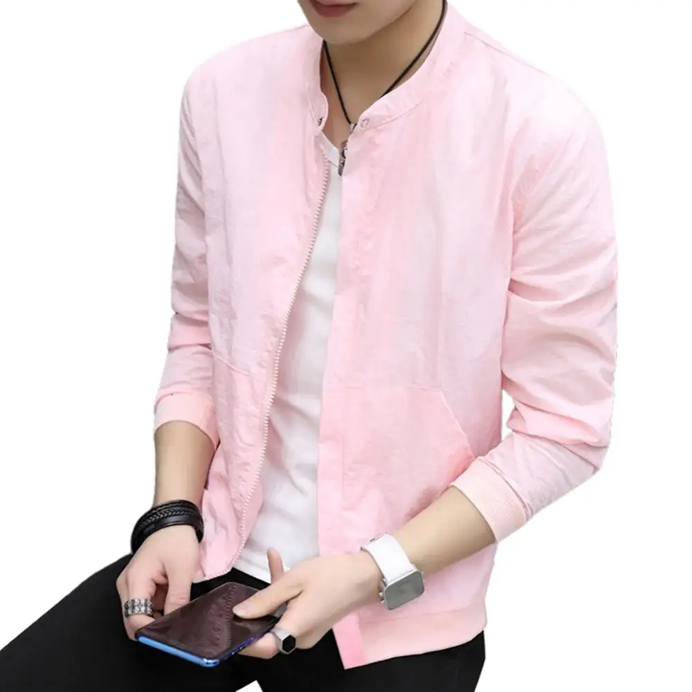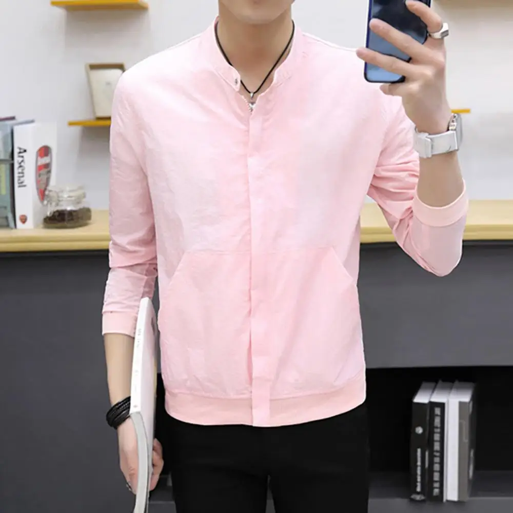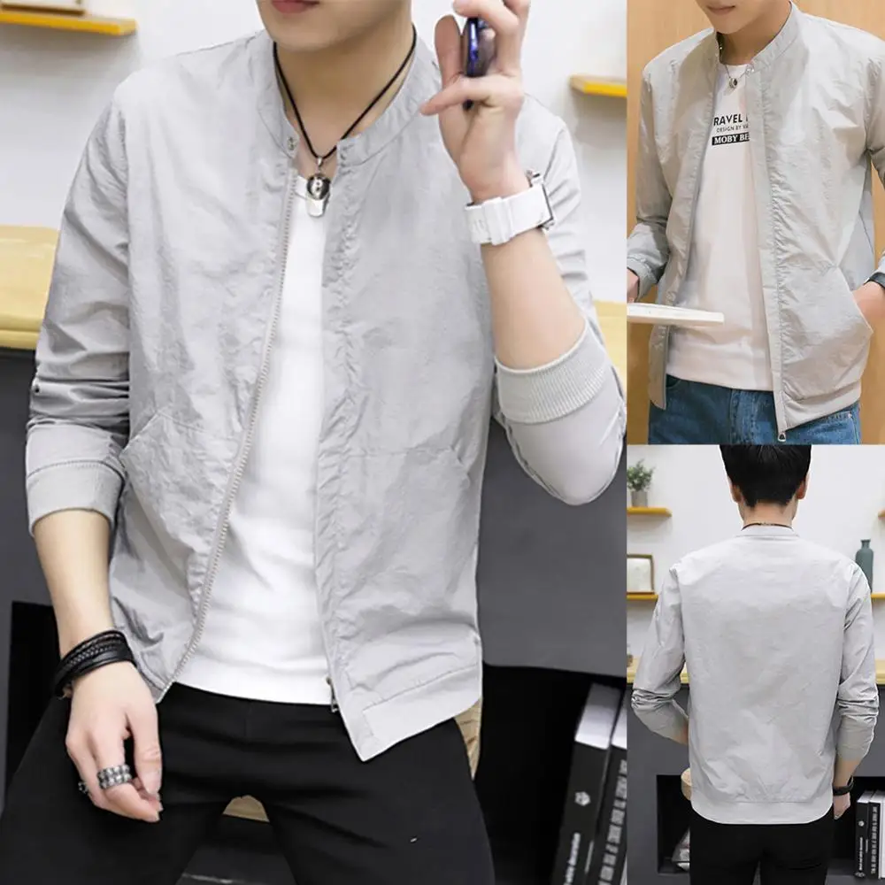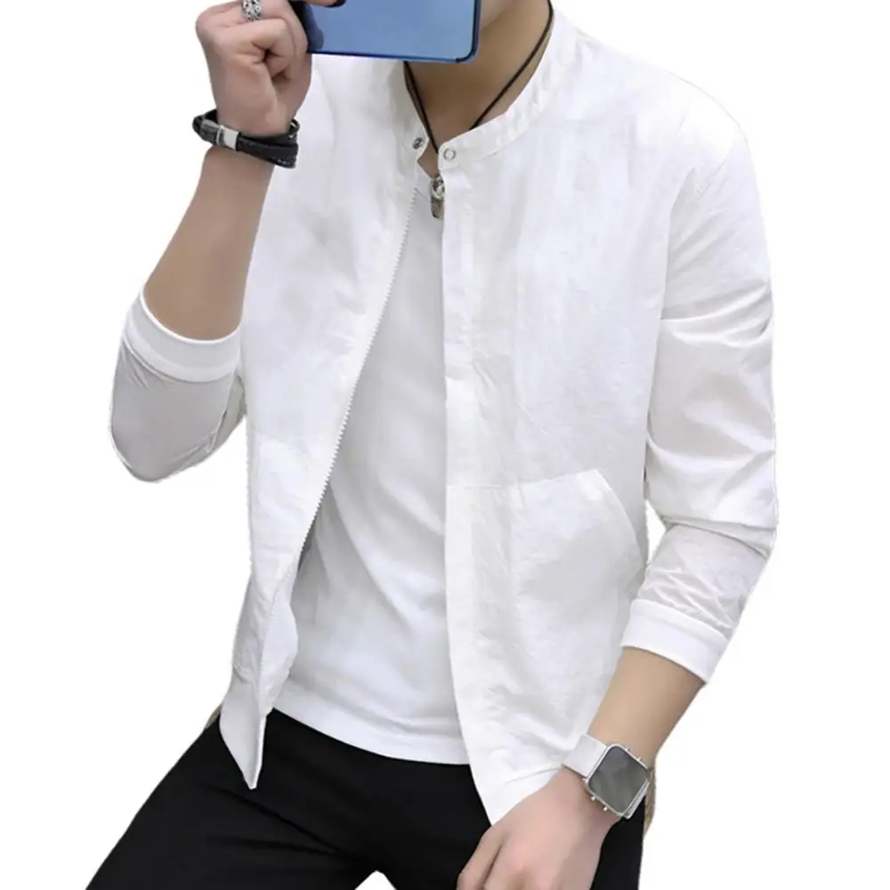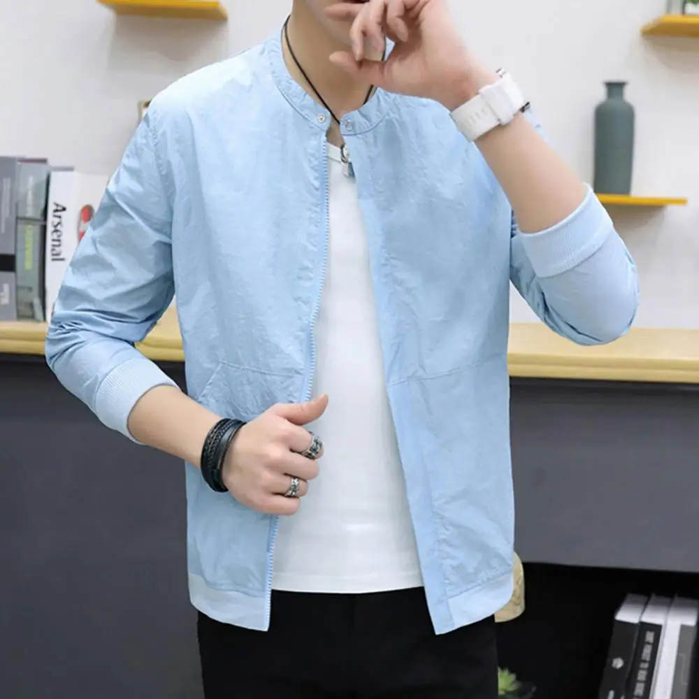 Мужская повседневная приталенная куртка, модная ультратонкая дышащая Солнцезащитная верхняя одежда с длинными рукавами, карманами на молнии