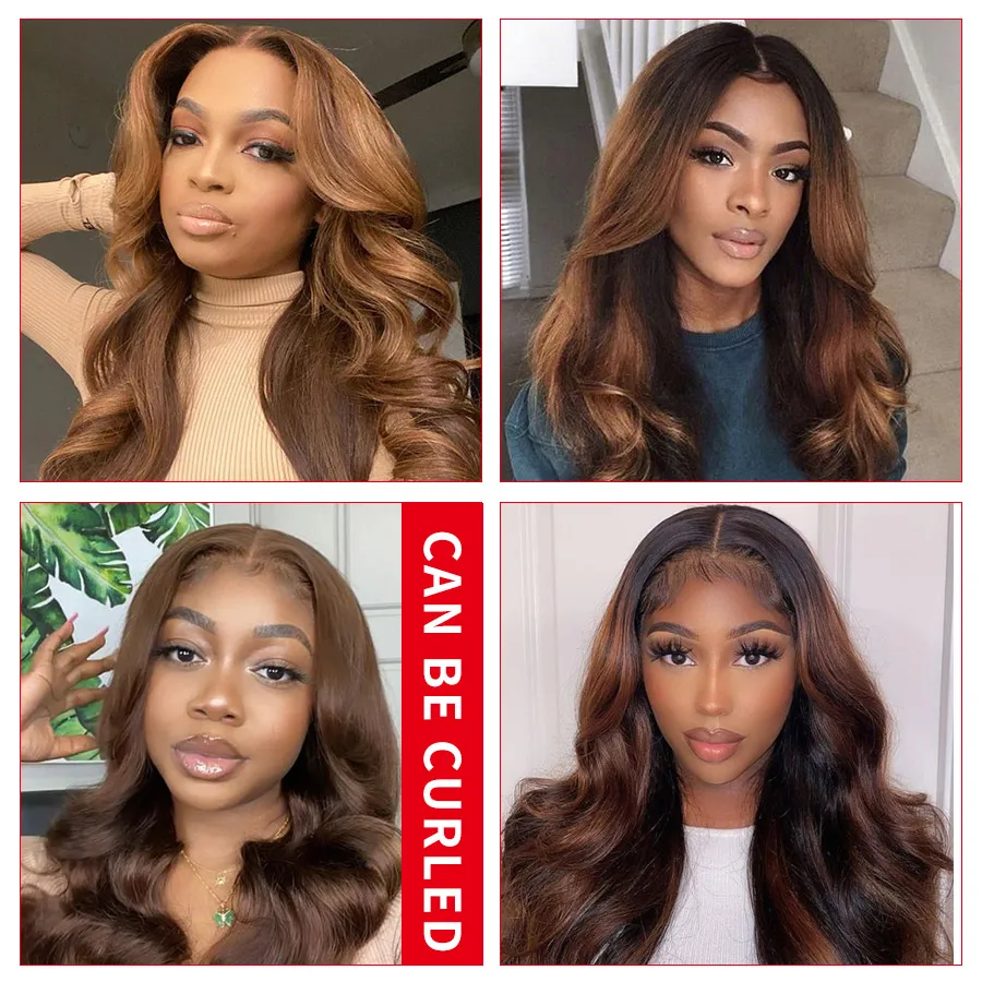 Светильник-коричневые прямые человеческие волосы, парики, фронтальные парики HD на сетке, предварительно выщипанные Детские волосы, T-образные цветные прямые человеческие волосы