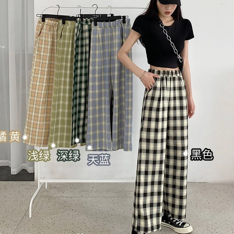 Размера плюс, новые корейские Стиль штаны в клетку; Сезон весна; Мо...