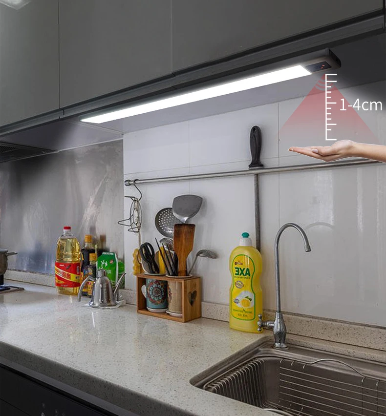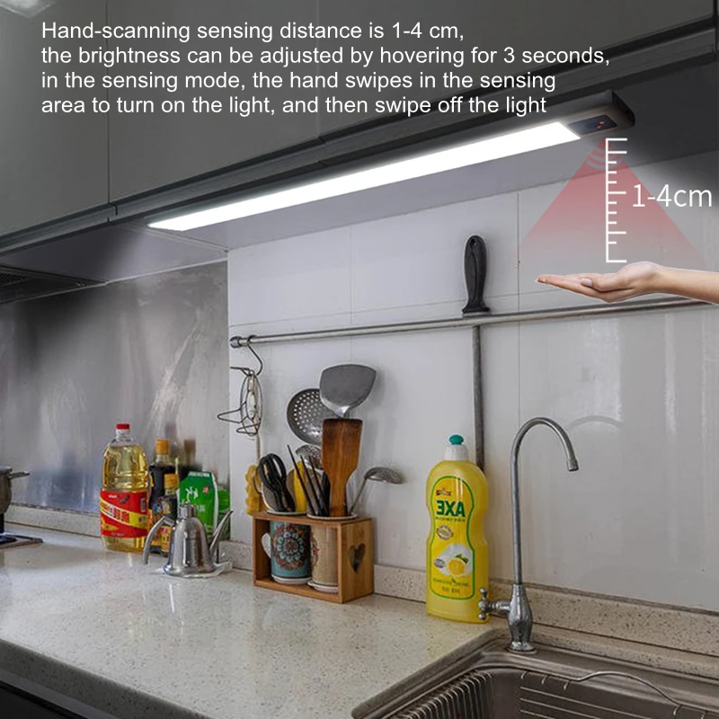 Лампа шла ровно месяц. Упакована хорошо (однако такой длинный пакет все же можно согнуть в дороге). Заказал модель JLM-SS40 HAND длиной 40 см и яркостью 3000К (теплый желтый цвет). Но лучше бы заказал 4000К (Natural White). Датчик руки срабатывает не далее 4 сантиметров, но этого вполне достаточно и удобно. Разместил над газовой плитой на вытяжке на встроенных магнитах и жду - сколько проработает (в инструкции не рекомендуют располагать эту лампу над горячими предметами). Зарядилась примерно за час.