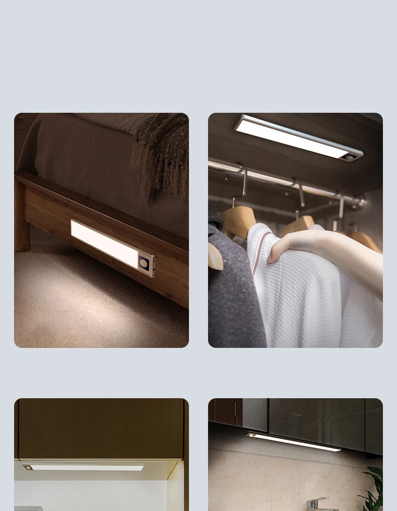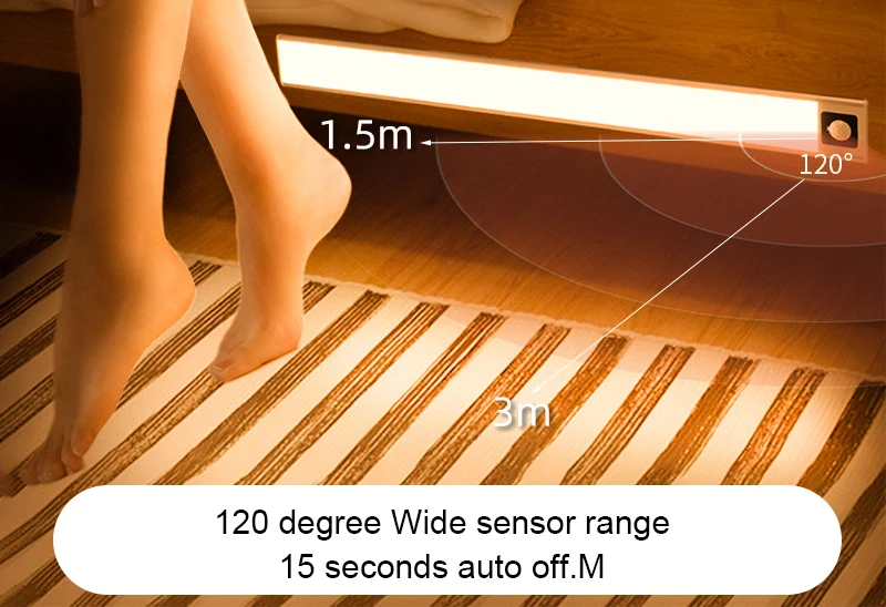 3169106 светодиодов инфракрасный датчик движения Ночной светильник USB Перезаряжаемый Авто ВклВыкл лампа для шкафа лестницы кухни