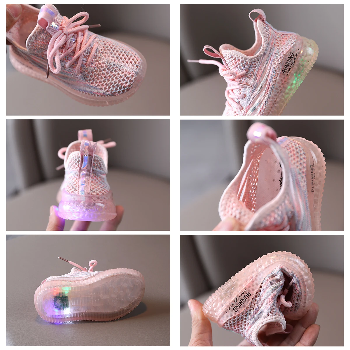 Детские светящиеся кроссовки, дышащие, повседневная обувь для мальчиков и девочек, размеры 21-30