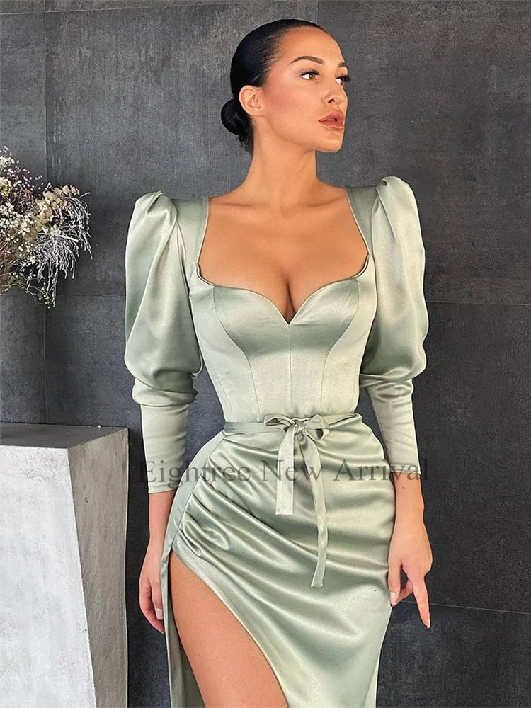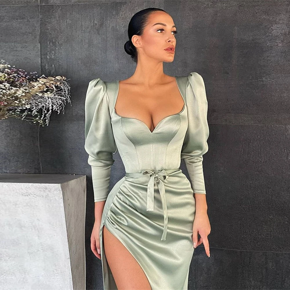 Вечернее платье в пол, шелковое атласное платье-Русалка с разрезом ...